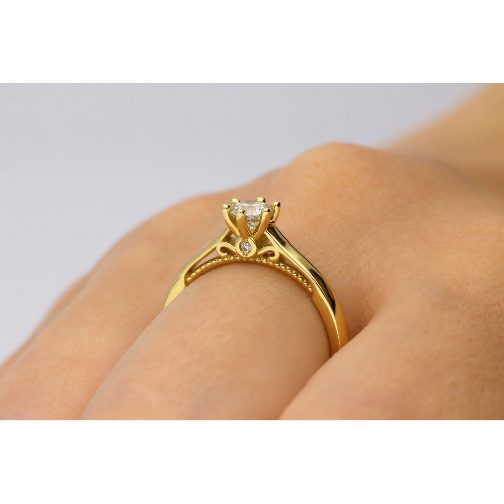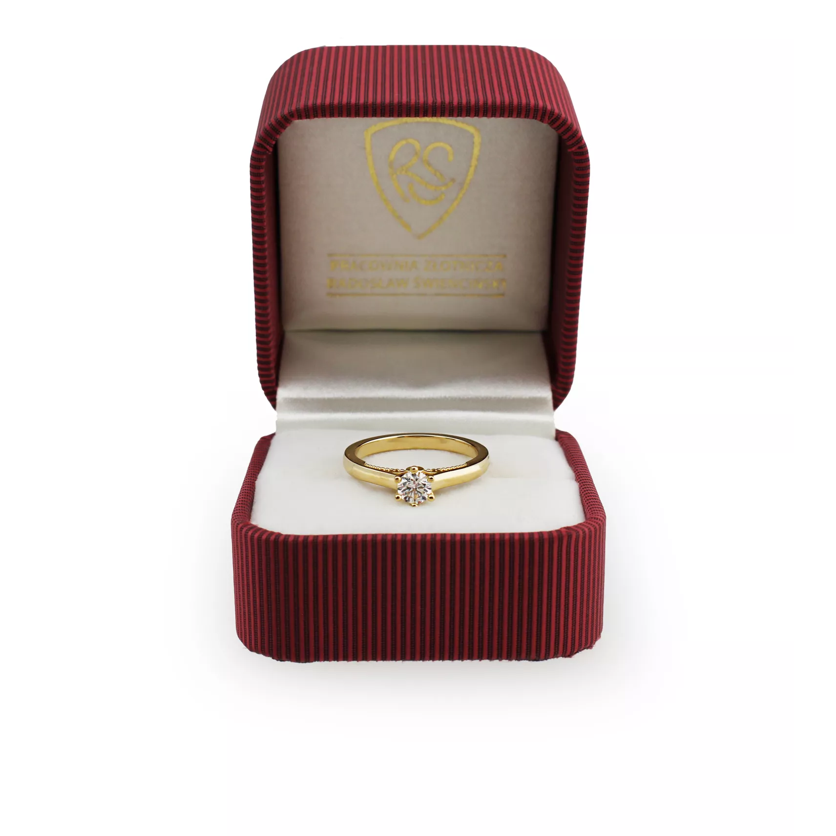 Starannie, ręcznie wykonany pierścionek z 14 karatowego złota o próbie 585, przyozdobiony wyjątkowym brylantem centralnym i 2 brylantami bocznymi o barwie H oraz czystości SI. Dostępny w trzech kolorach złota: białym, żółtym i różowym. Do zakupu dołączany jest międzynarodowy certyfikat IGI potwierdzający autentyczność brylantów. Wszystkie nasze produkty wykonane są z najwyższej jakości materiałów i kamieni szlachetnych. Biżuteria objęta jest 12 miesięczną gwarancją pracowni. Pierścionek model RS00R1 wykonany w autorskiej Pracowni Złotniczej Radosława Świeńcińskiego. Nasza biżuteria to wyjątkowy prezent na każdą okazję.