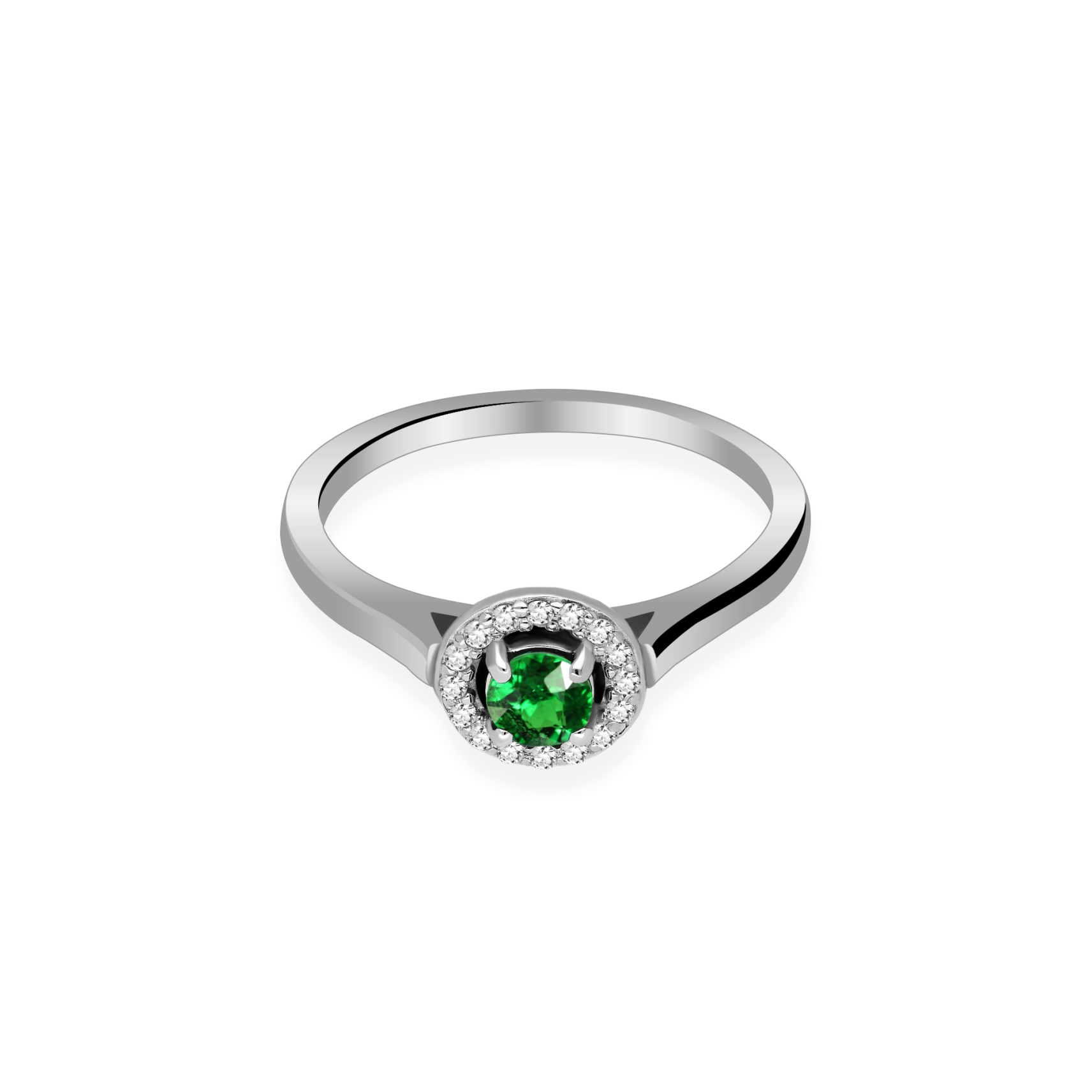 Pierścionek Zaręczynowy Z Szmaragdem 0,21 ct I Brylantami 0,07 ct