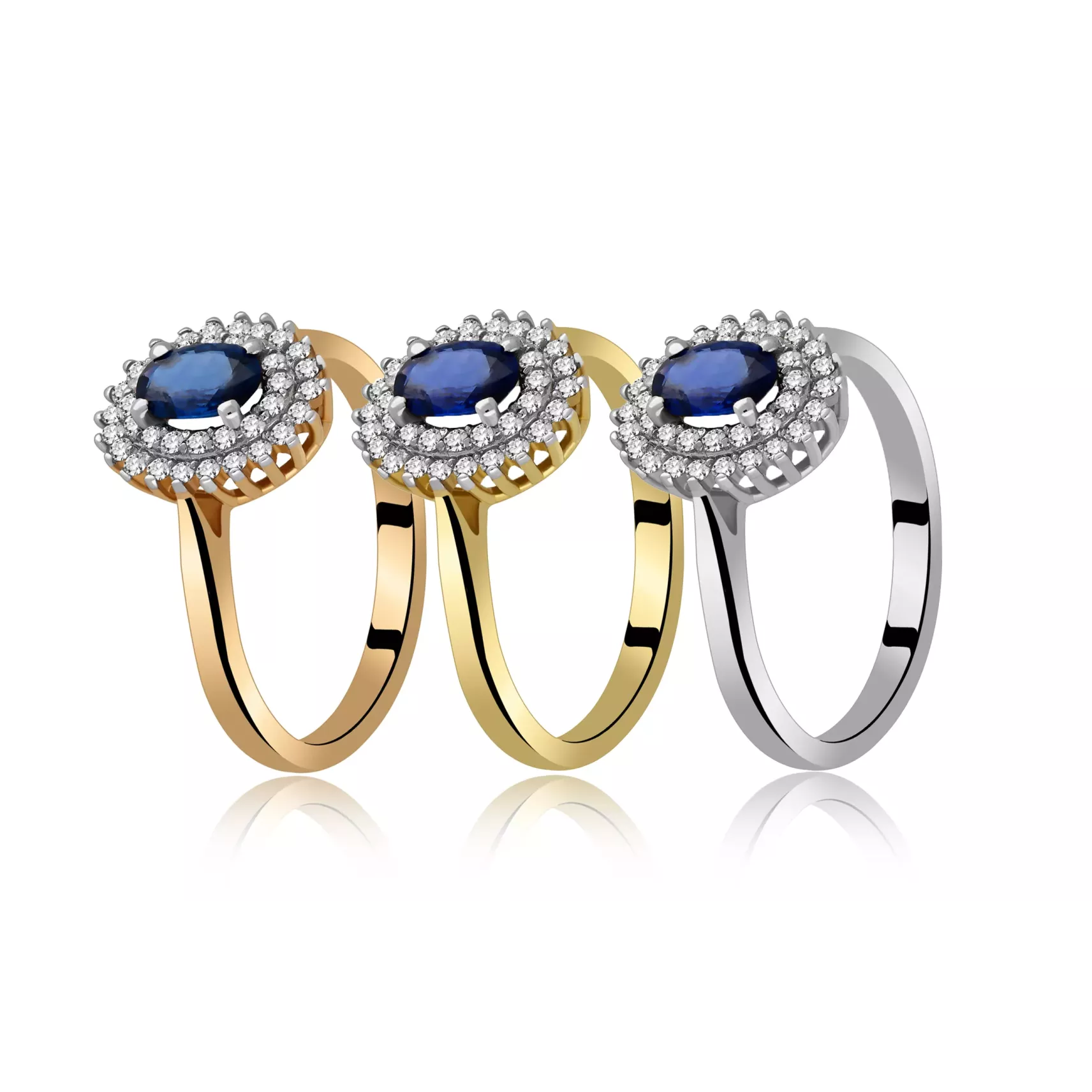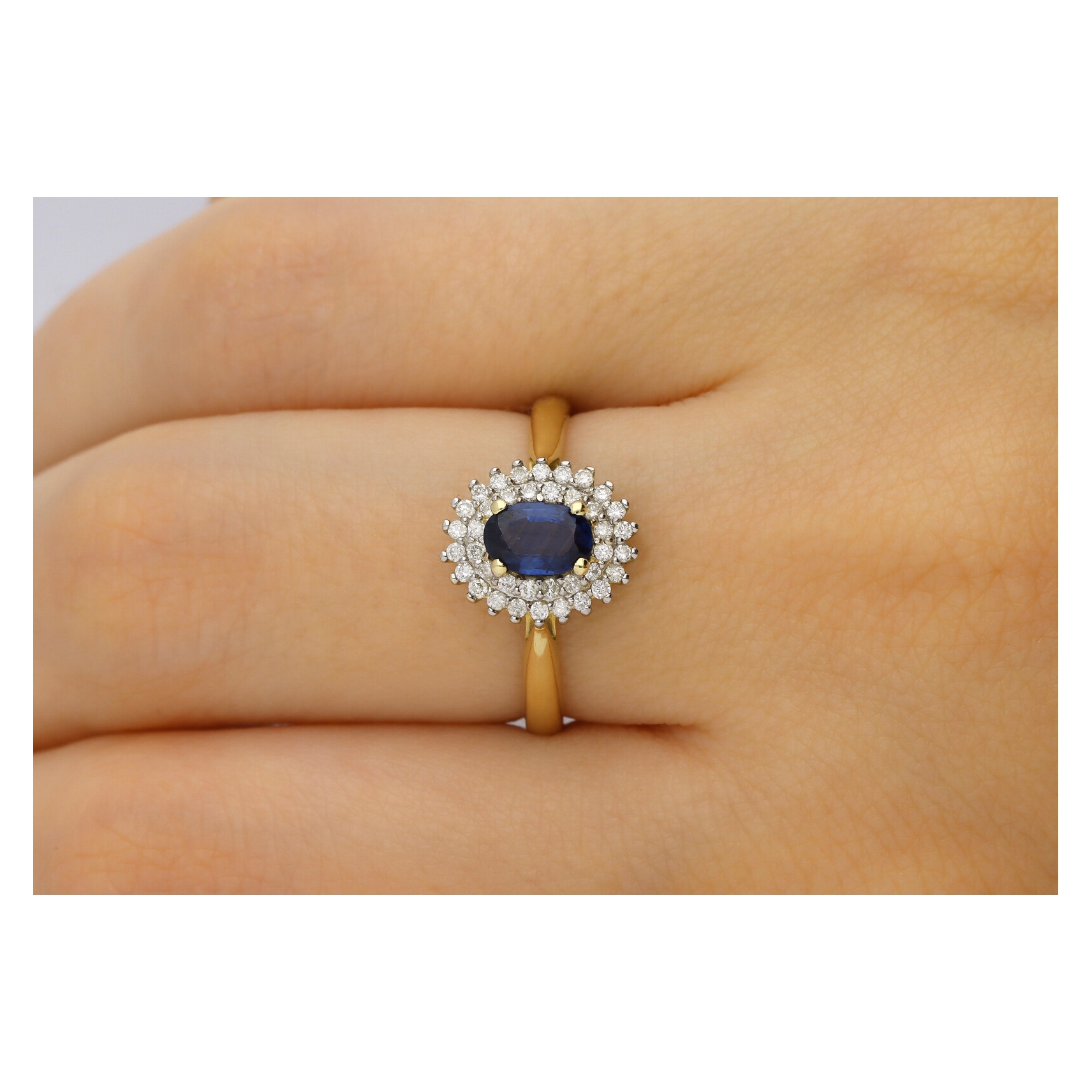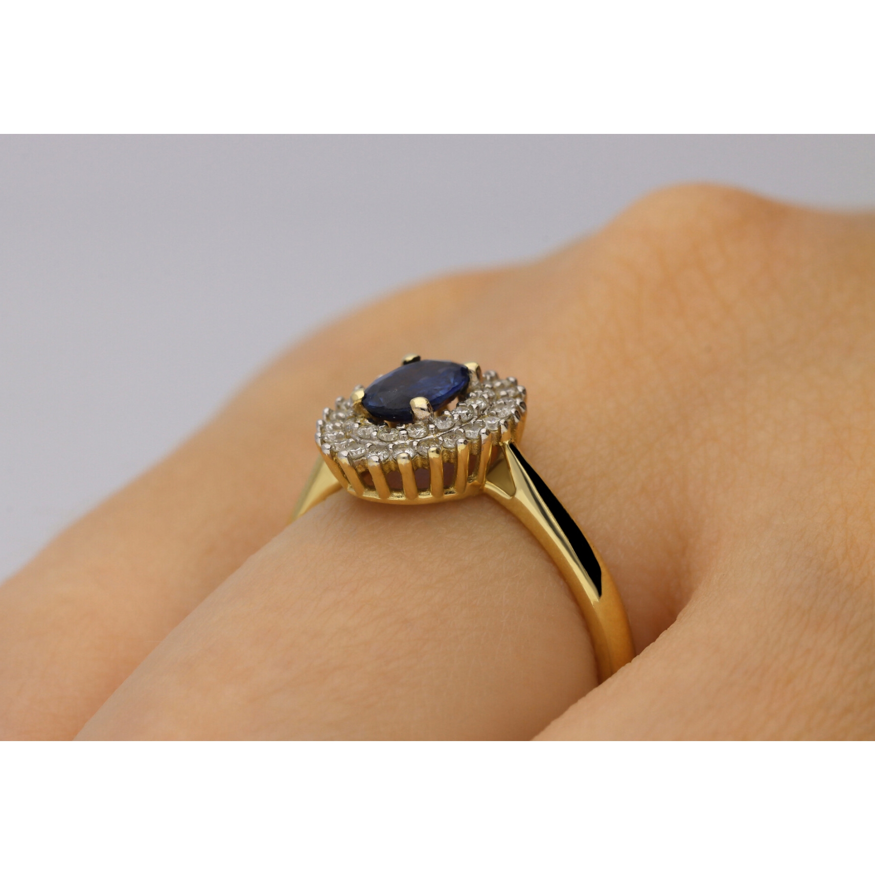 Złoty Pierścionek Z Szafirem I Brylantami RSWK-14