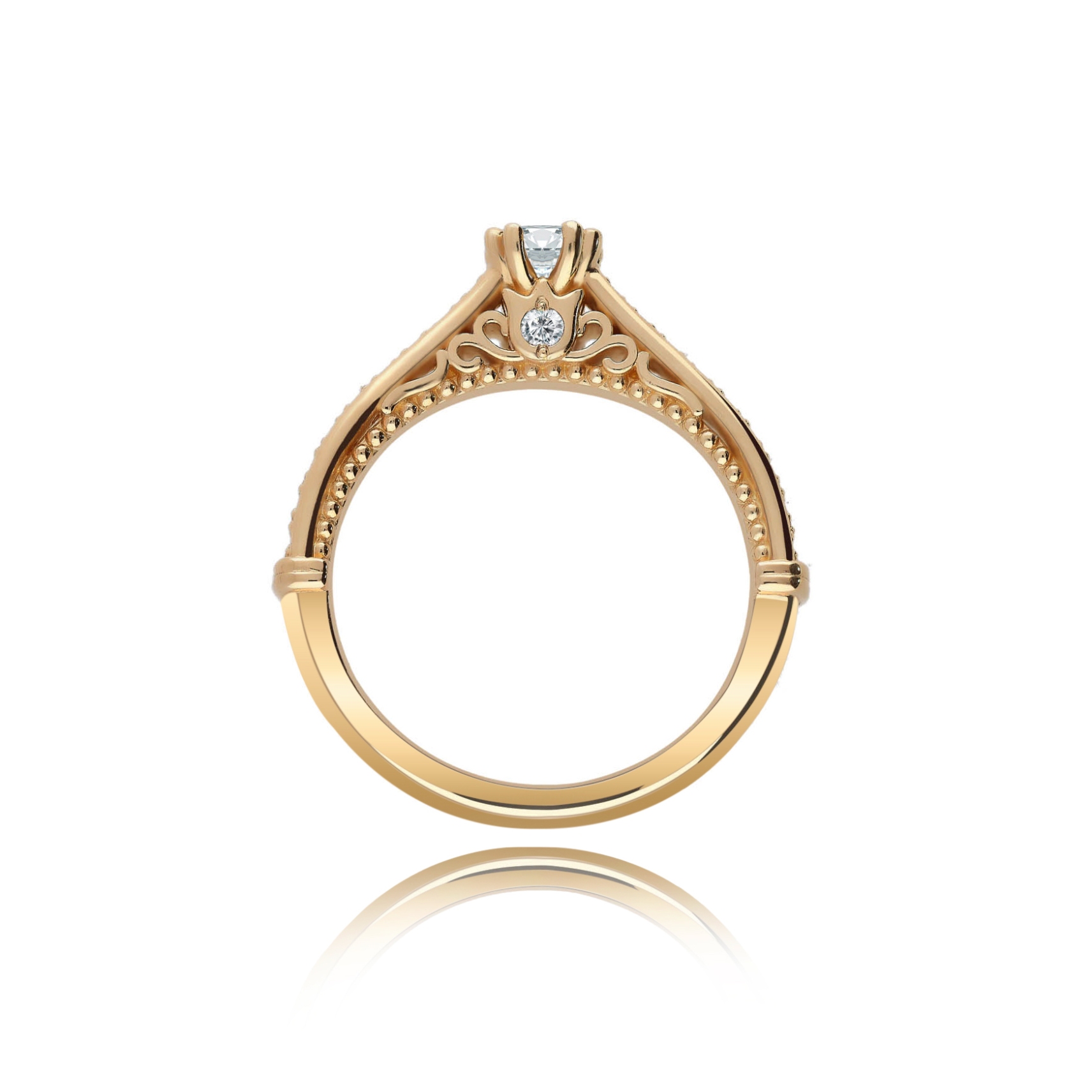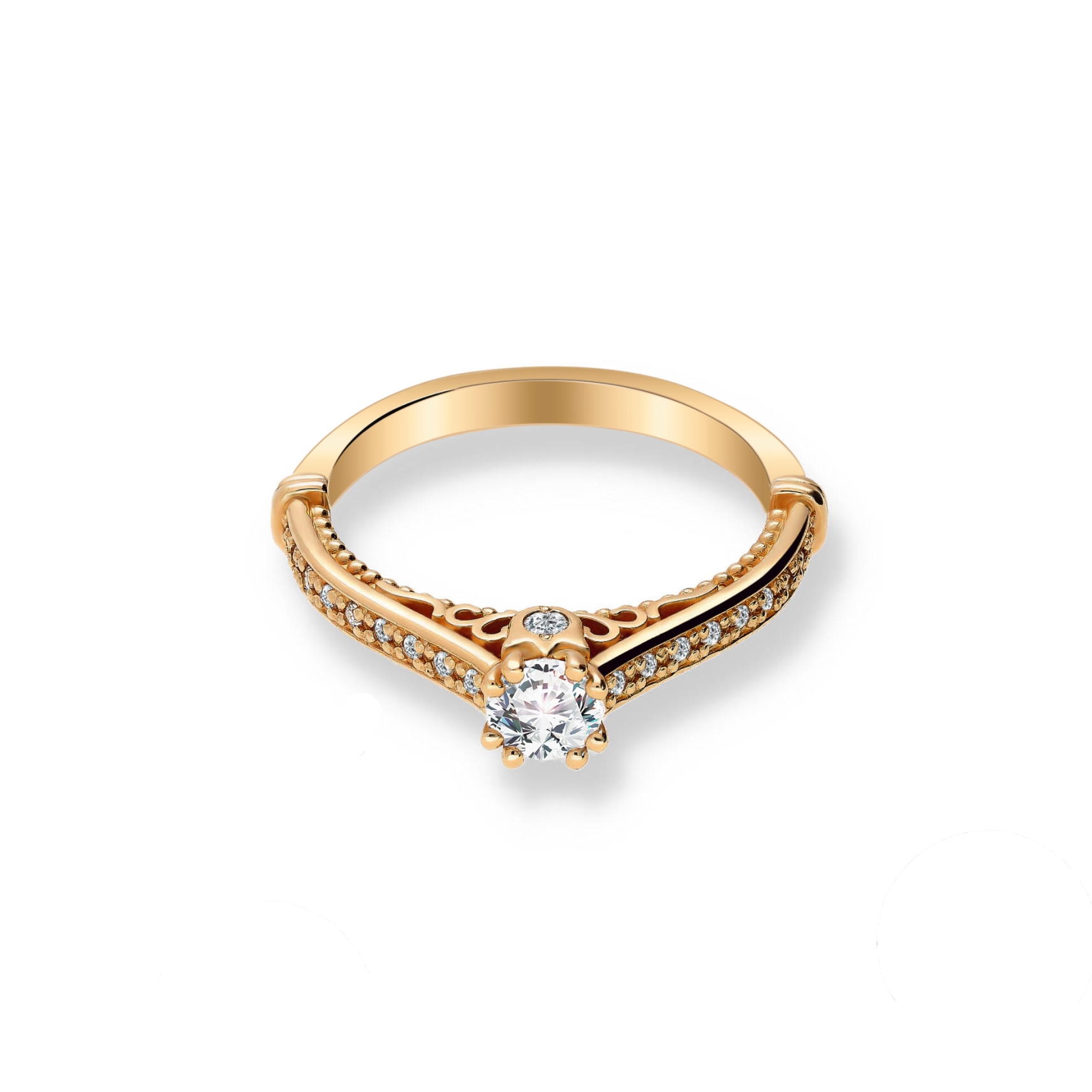 Starannie, ręcznie wykonany pierścionek z 14 karatowego  złota o próbie 585, przyozdobiony wyjątkowym brylantem centralnym oraz 20 brylantami bocznymi o barwie H oraz czystości SI. Dostępny w trzech kolorach złota: białym, żółtym i różowym. Do zakupu dołączany jest certyfikat potwierdzający autentyczność brylantów. Wszystkie nasze produkty wykonane są z najwyższej jakości materiałów i kamieni szlachetnych. Biżuteria objęta jest 12 miesięczną gwarancją pracowni. Pierścionek model RSTB30 wykonany w autorskiej Pracowni Złotniczej Radosława Świeńcińskiego. Nasza biżuteria to wyjątkowy prezent na każdą okazję.