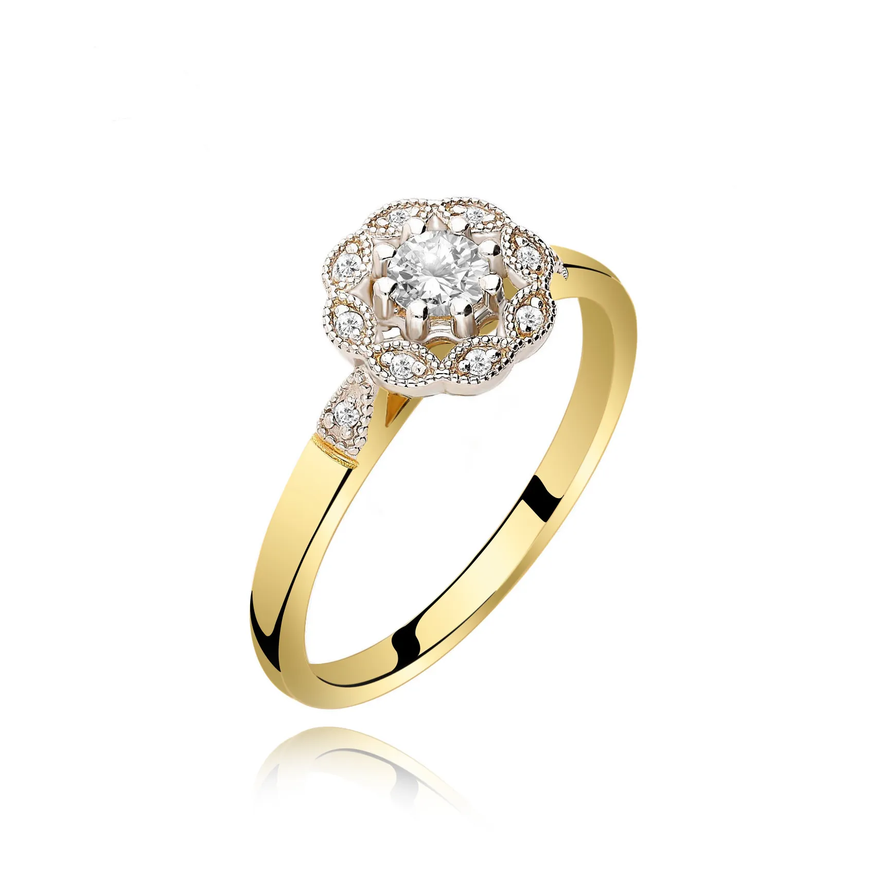 Pierścionek Zaręczynowy Z Brylantami 0,26 ct Kwiatek