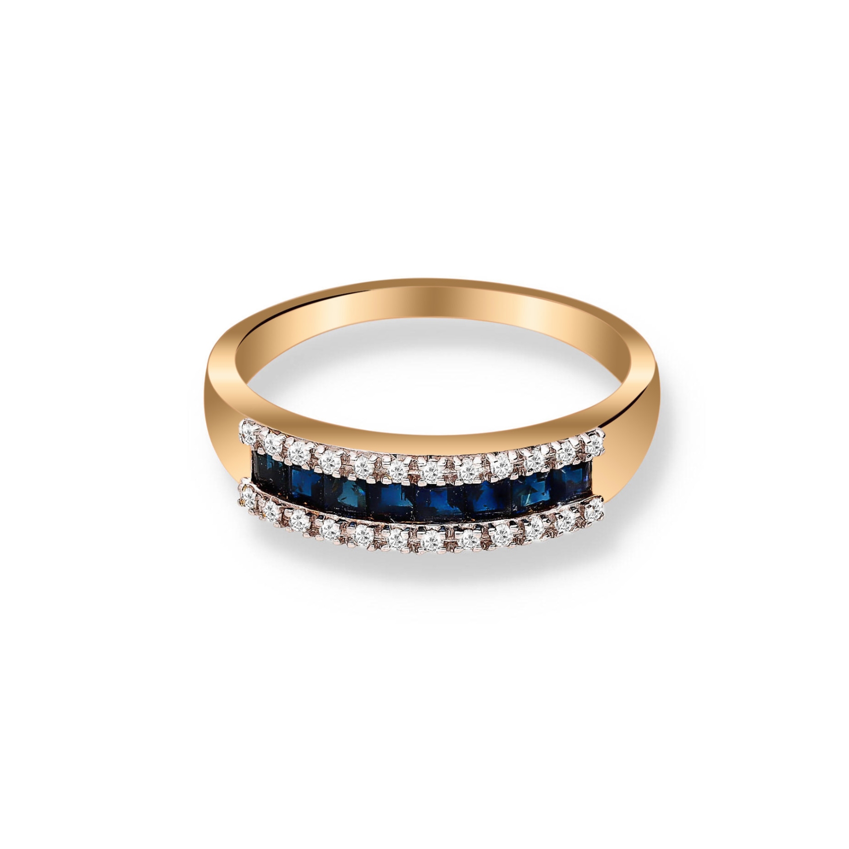 Pierścionek Złoty Z Brylantami I Szafirami RSV0024