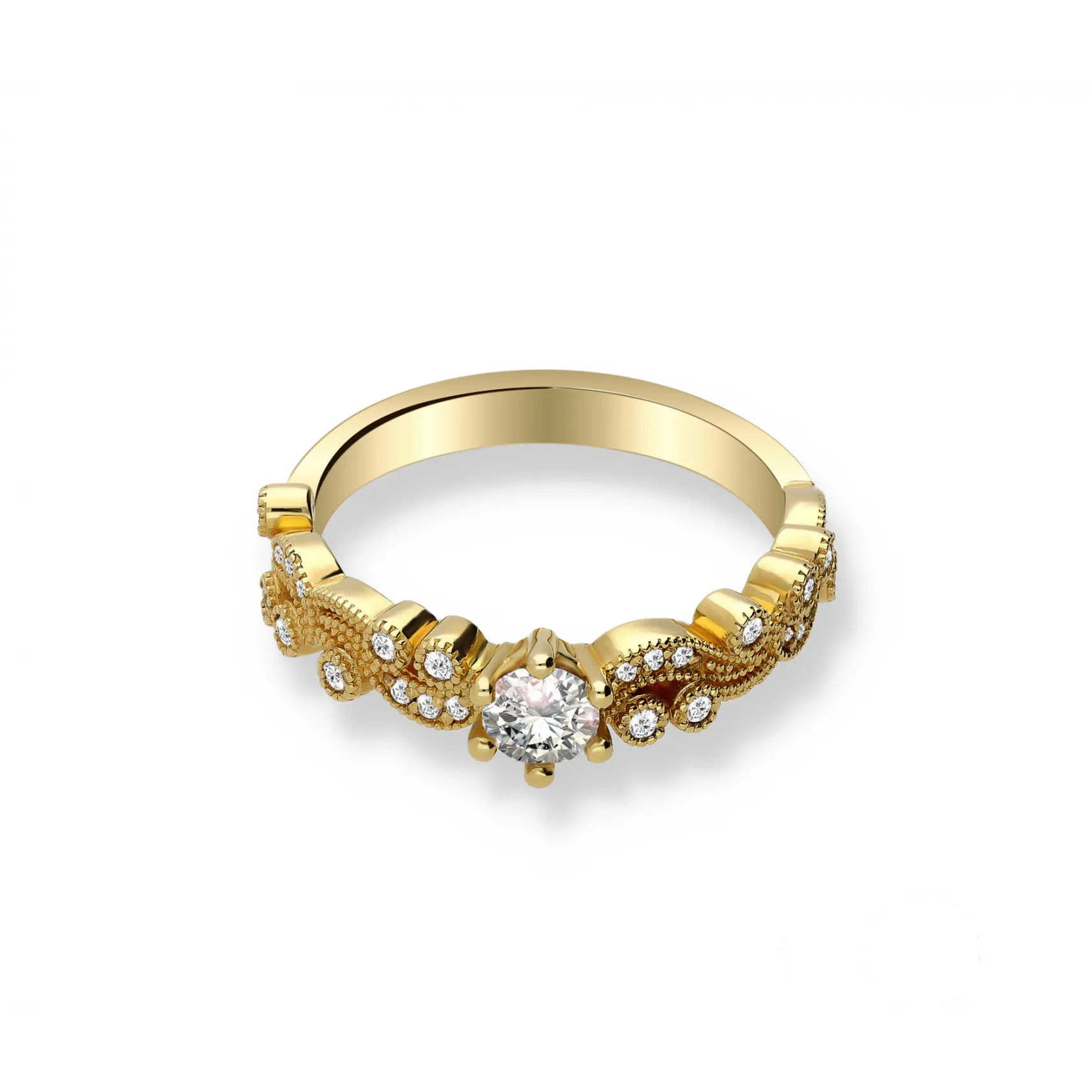 Starannie, ręcznie wykonany pierścionek z 14 karatowego złota o próbie 585, przyozdobiony wyjątkowym centralnym brylantem oraz 24 brylantami bocznymi o barwie H oraz czystości SI. Dostępny w trzech kolorach złota: białym, żółtym i różowym. Do zakupu dołączany jest certyfikat potwierdzający autentyczność brylantów. Wszystkie nasze produkty wykonane są z najwyższej jakości materiałów i kamieni szlachetnych. Biżuteria objęta jest 12 miesięczną gwarancją pracowni. Pierścionek model RSTB54 wykonany w autorskiej Pracowni Złotniczej Radosława Świeńcińskiego. Nasza biżuteria to wyjątkowy prezent na każdą okazję.