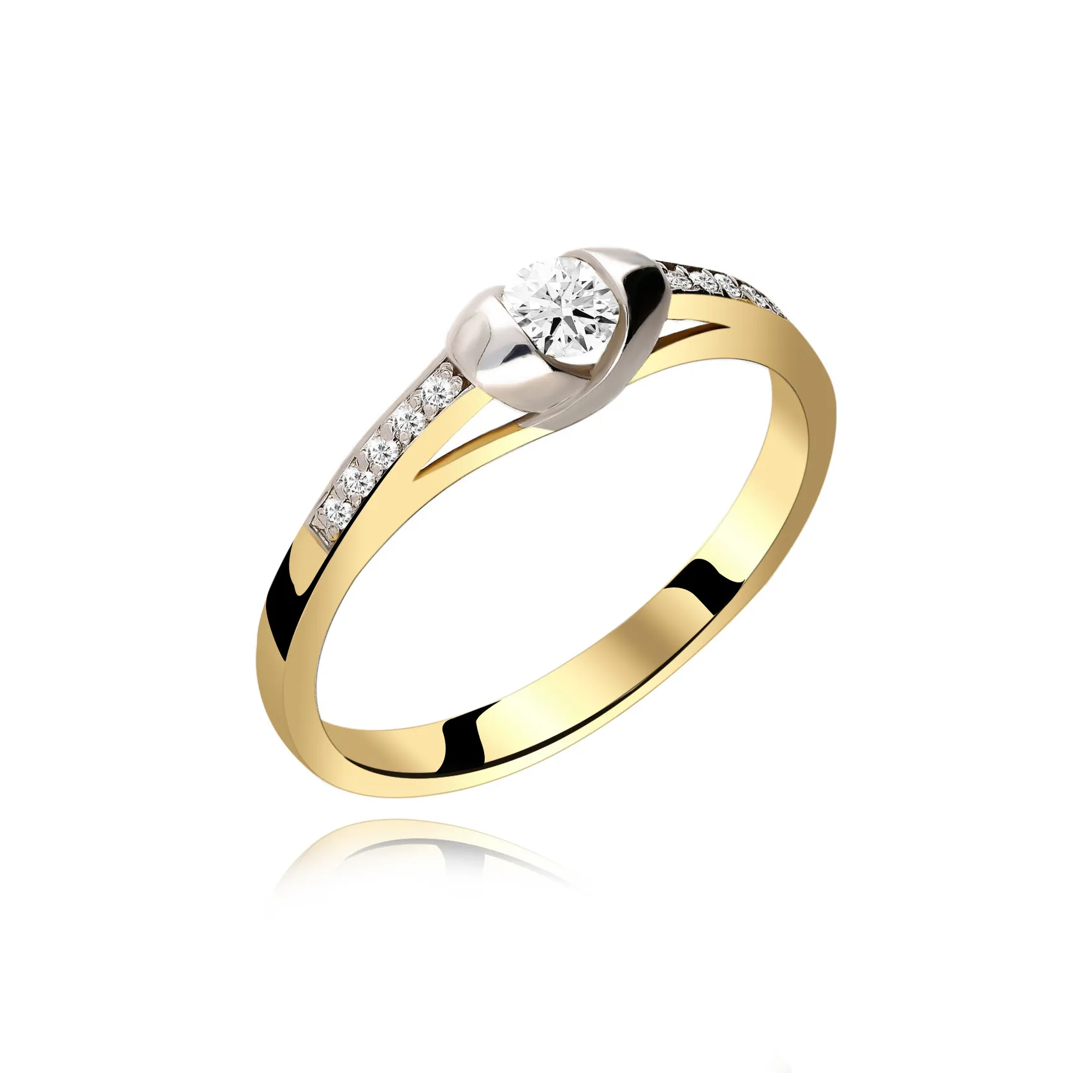 Starannie, ręcznie wykonany pierścionek z 14 karatowego złota o próbie 585, przyozdobiony wyjątkowym brylantem centralnym oraz 10 brylantami bocznymi o barwie H oraz czystości SI. Dostępny w trzech kolorach złota: białym, żółtym i różowym. Do zakupu dołączany jest certyfikat potwierdzający autentyczność brylantów. Wszystkie nasze produkty wykonane są z najwyższej jakości materiałów i kamieni szlachetnych. Biżuteria objęta jest 12 miesięczną gwarancją pracowni. Pierścionek model RS0256 wykonany w autorskiej Pracowni Złotniczej Radosława Świeńcińskiego. Nasza biżuteria to wyjątkowy prezent na każdą okazję.