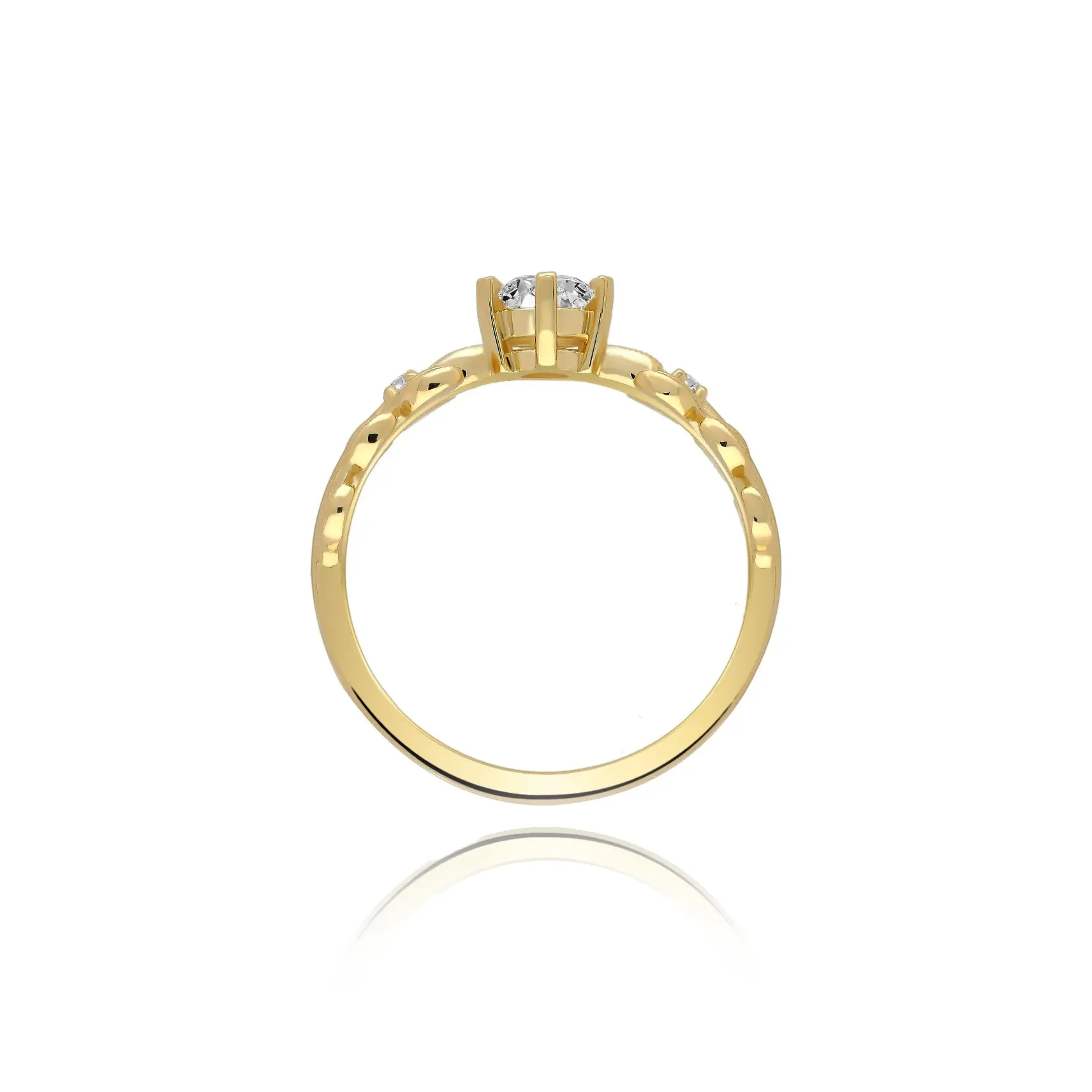 Starannie, ręcznie wykonany pierścionek z 14 karatowego złota o próbie 585, przyozdobiony wyjątkowym moissanitem centralnym i 2 brylantami bocznymi o barwie H oraz czystości SI. Dostępny w trzech kolorach złota: białym, żółtym i różowym. Do zakupu dołączany jest certyfikat potwierdzający autentyczność brylantów. Wszystkie nasze produkty wykonane są z najwyższej jakości materiałów i kamieni szlachetnych. Biżuteria objęta jest 12 miesięczną gwarancją pracowni. Pierścionek jest wykonany w autorskiej Pracowni Złotniczej Radosława Świeńcińskiego. Nasza biżuteria to wyjątkowy prezent na każdą okazję.