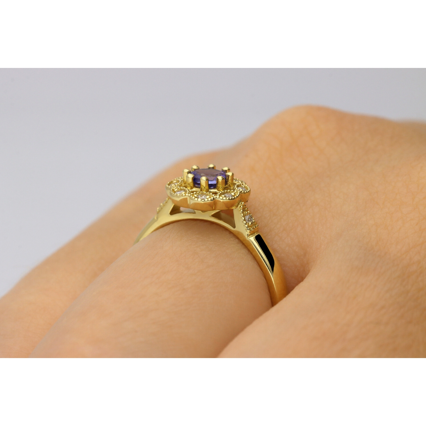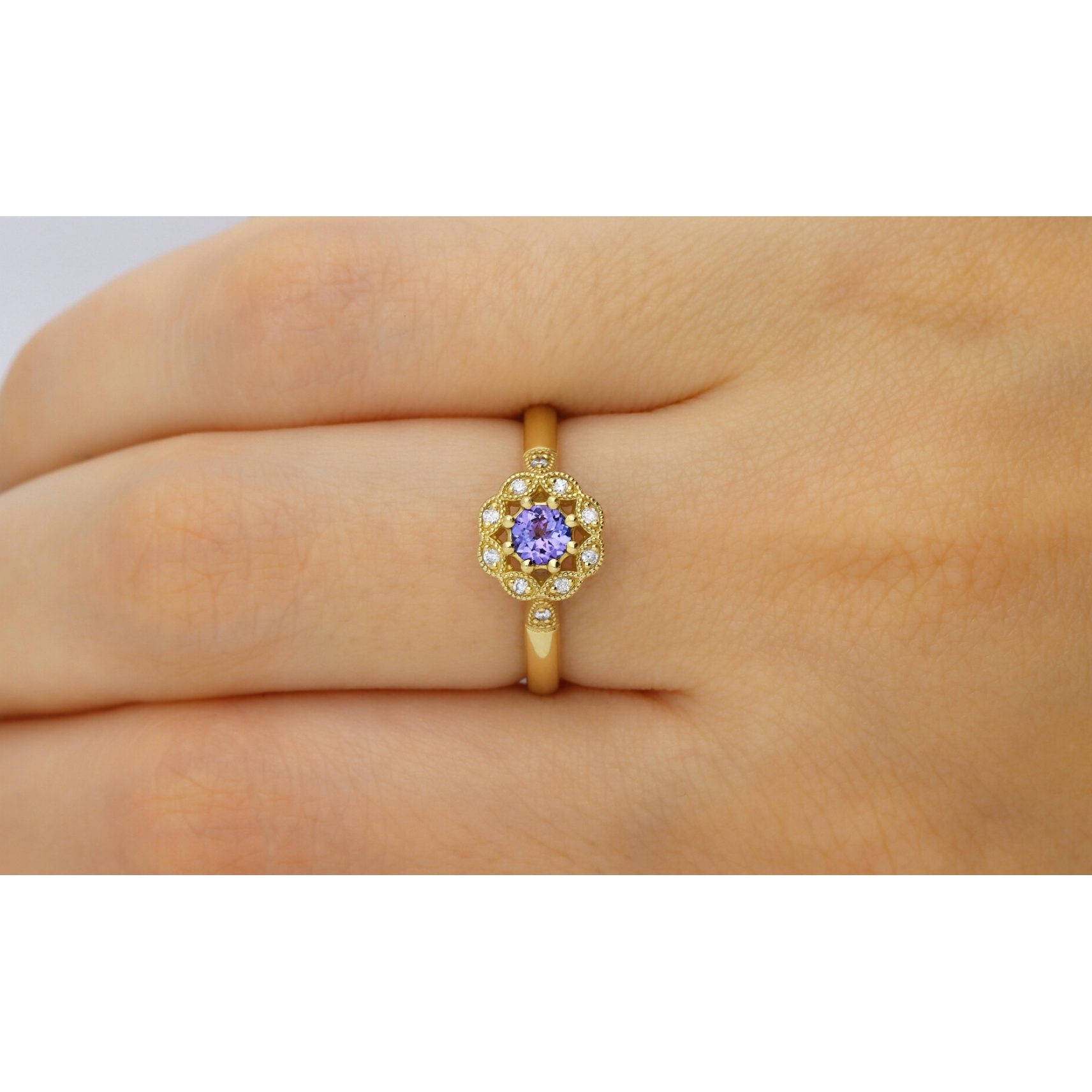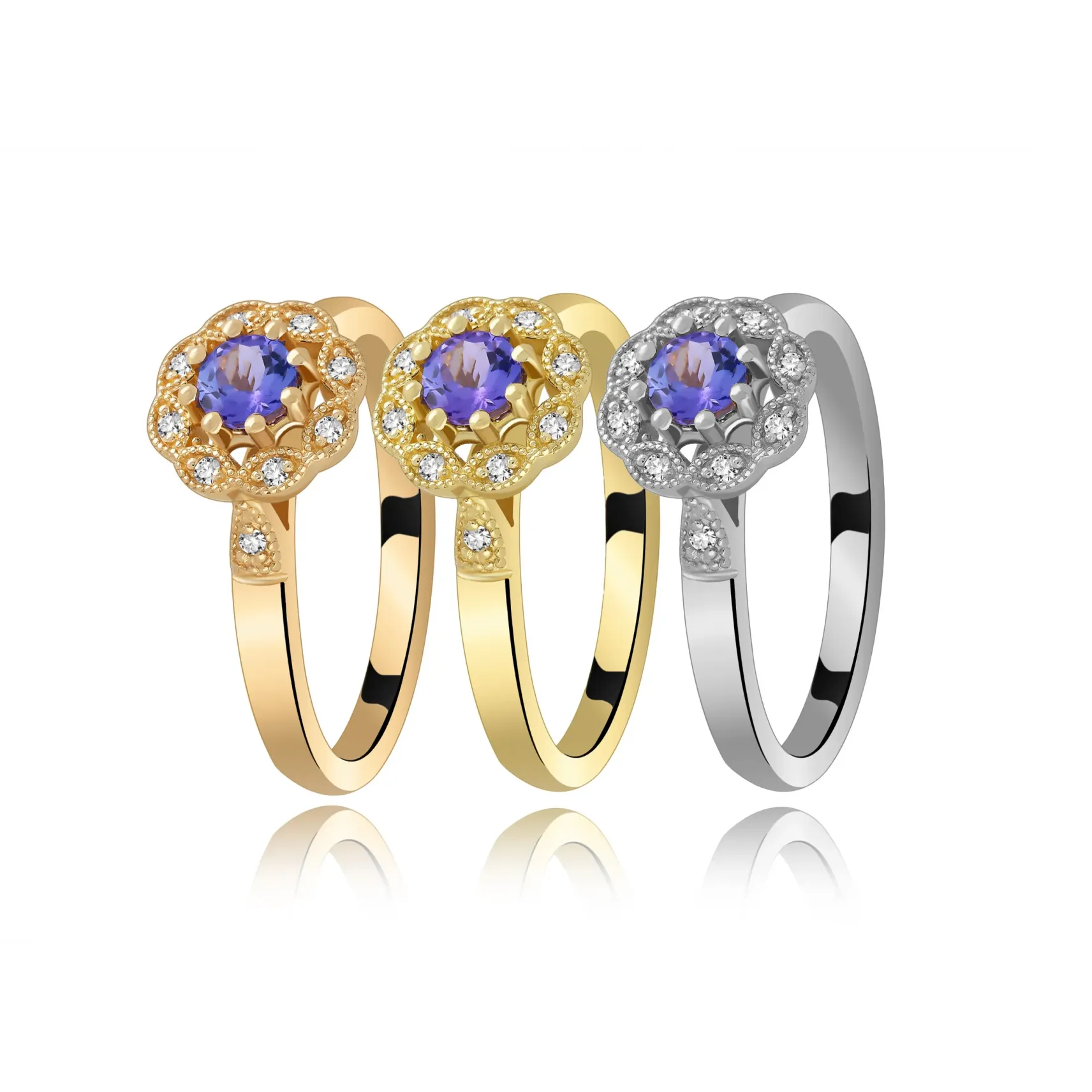 Pierścionek Zaręczynowy Z Tanzanitem 0,29ct I Brylantami 0,05 ct