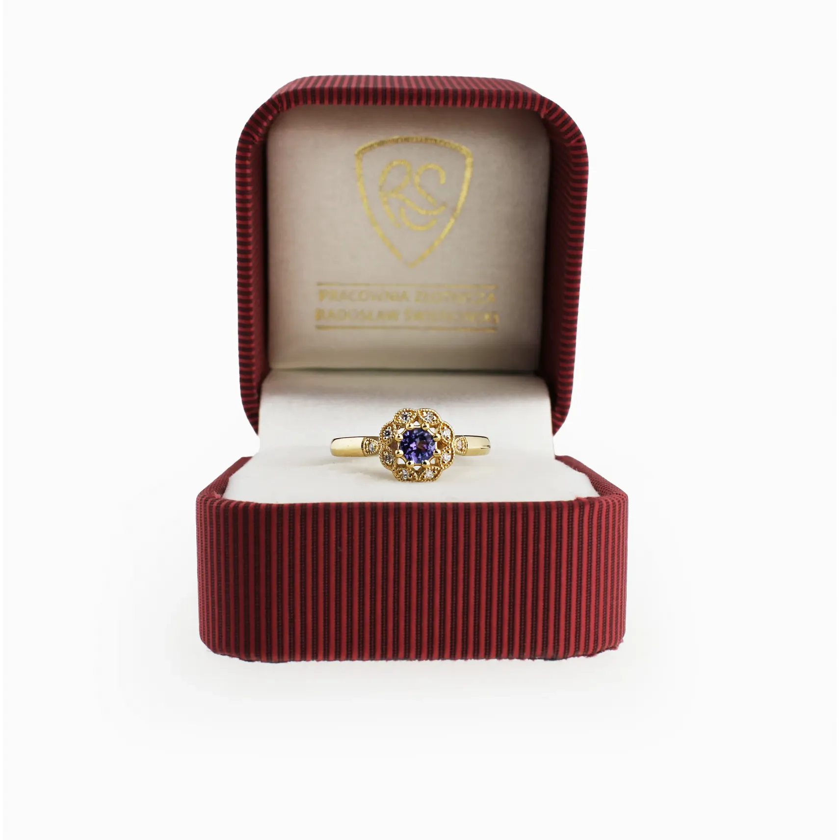 Złoty Pierścionek Z Tanzanitem I Brylantami RS0370